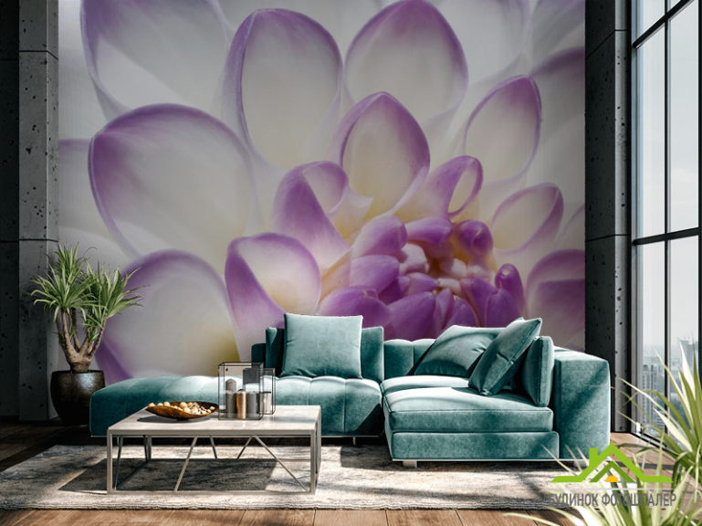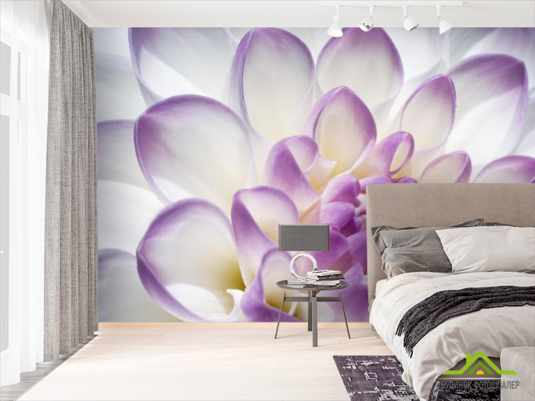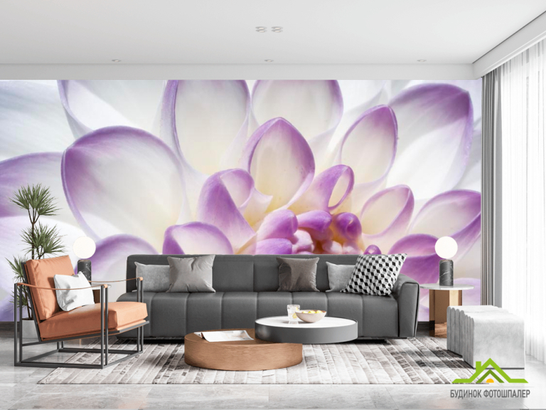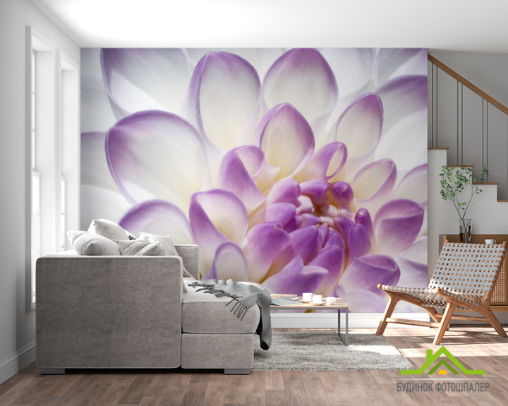 Фотошпалери Пелюстки півонії біло-фіолетові Фотошпалери Пелюстки півонії біло-фіолетові