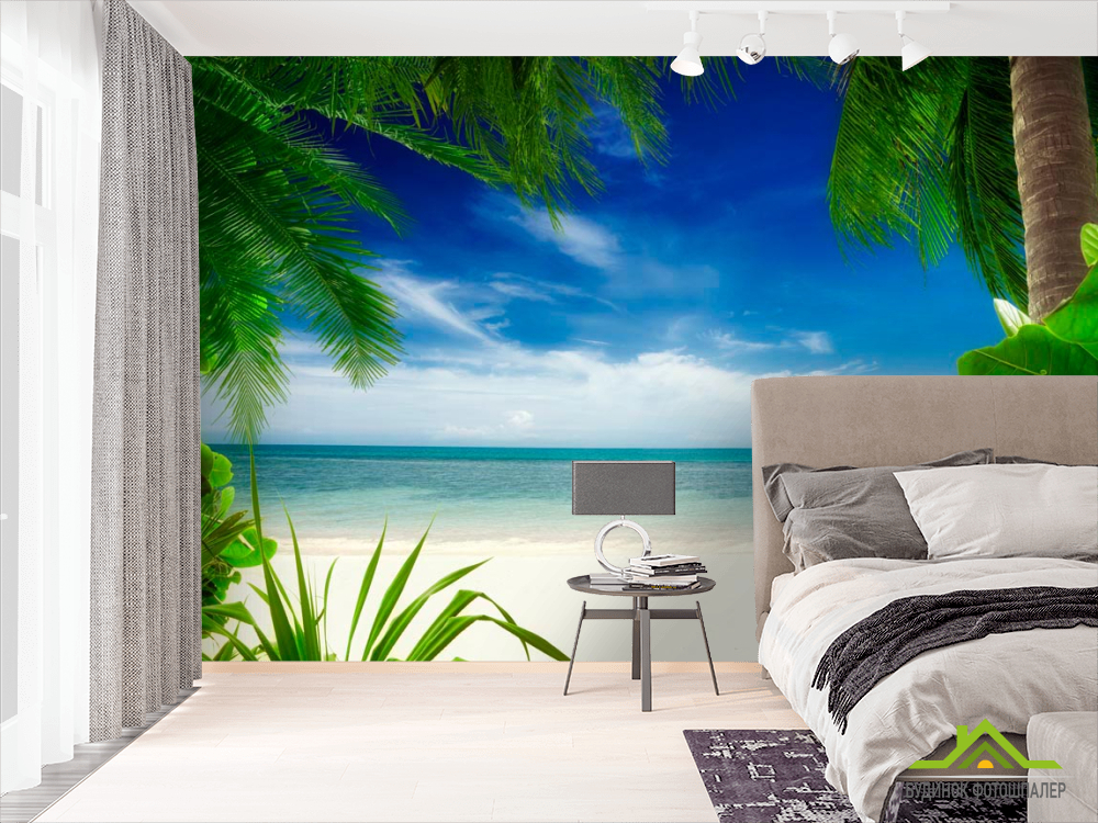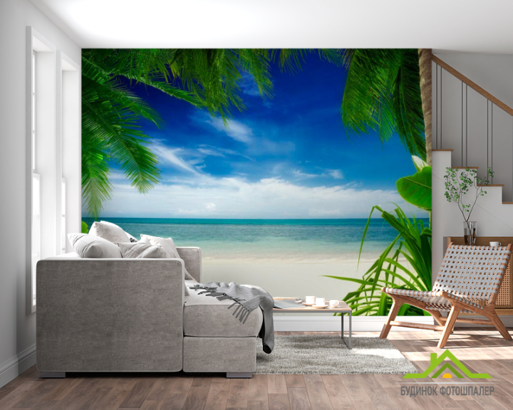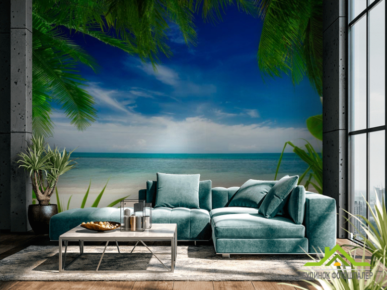 Фотошпалери Вид з-за пальми Фотошпалери Вид з-за пальми