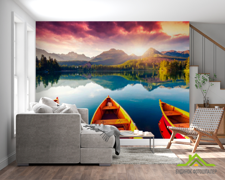 Фотошпалери Три човни, вода Фотошпалери Три човни, вода