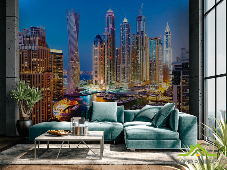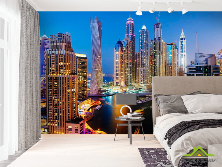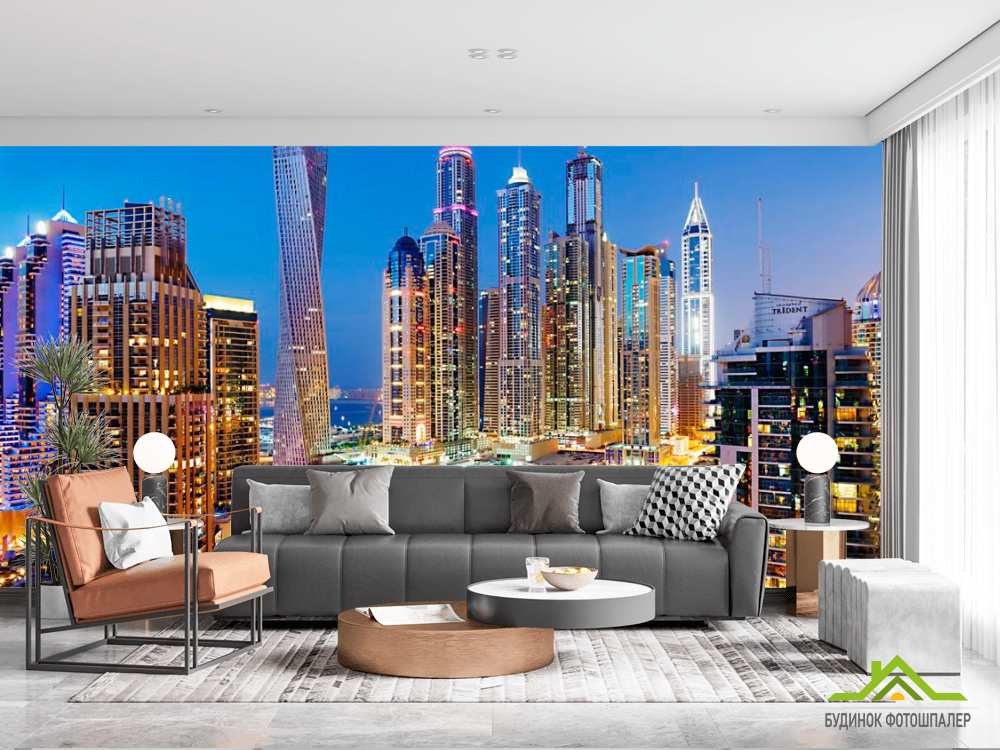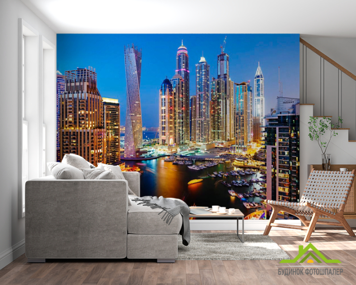 Фотошпалери Причал, ніч, висотки Фотошпалери Причал, ніч, висотки