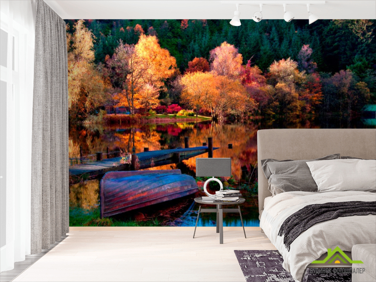 Фотошпалери Під осінь, човен Фотошпалери Під осінь, човен