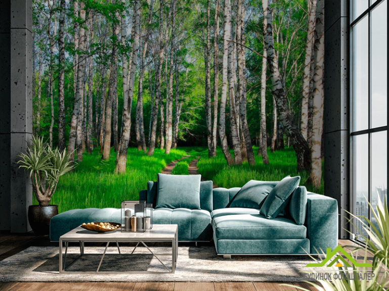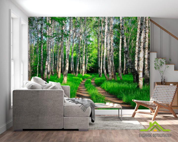 Фотошпалери Дорога, берізки, ліс Фотошпалери Дорога, берізки, ліс