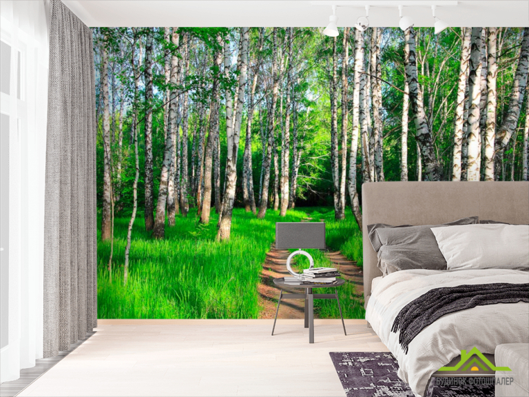 Фотошпалери Дорога, берізки, ліс