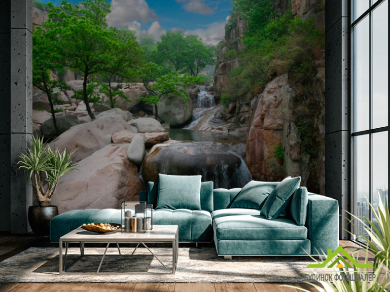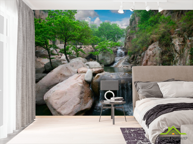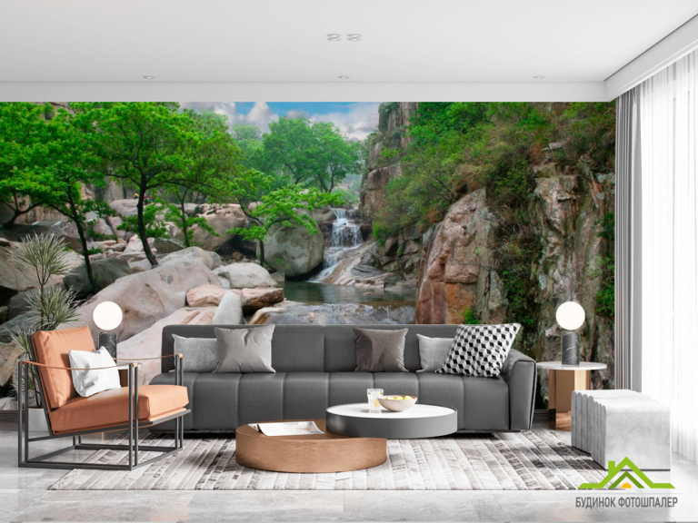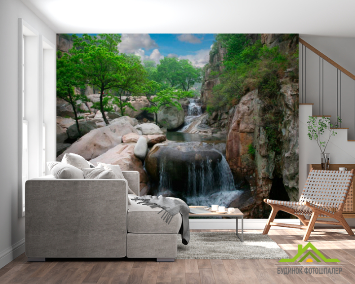 Фотошпалери Дерева, вода, гори