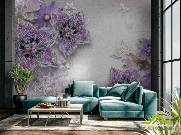 Фотошпалери 3d брошка+квіти