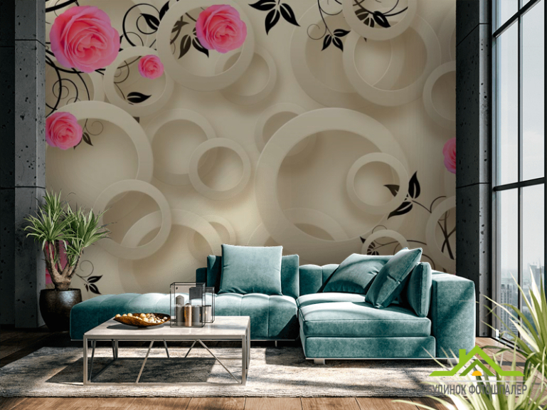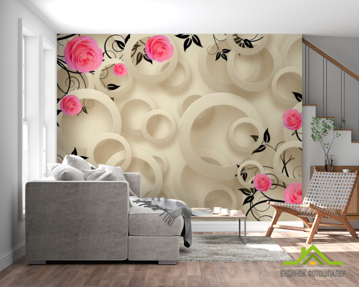 Фотошпалери Троянди і кола 3d Фотошпалери Троянди і кола 3d