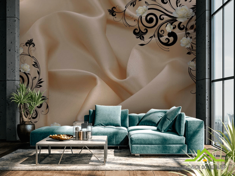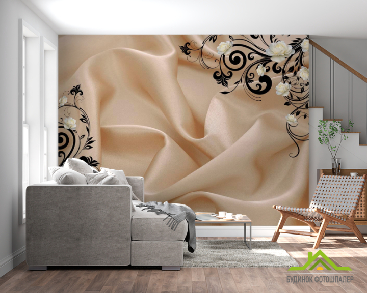 Фотошпалери Атласна тканина і 3d троянди