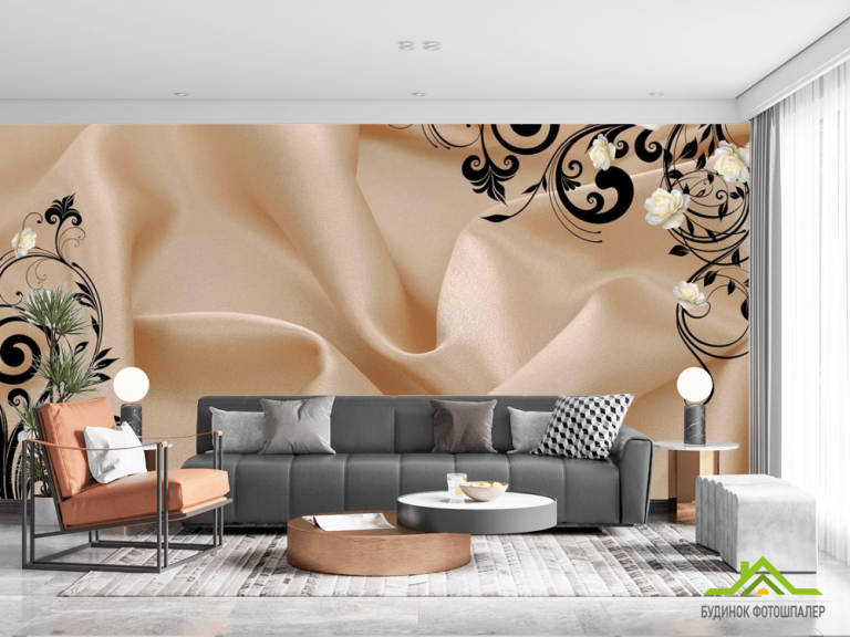 Фотошпалери Атласна тканина і 3d троянди Фотошпалери Атласна тканина і 3d троянди