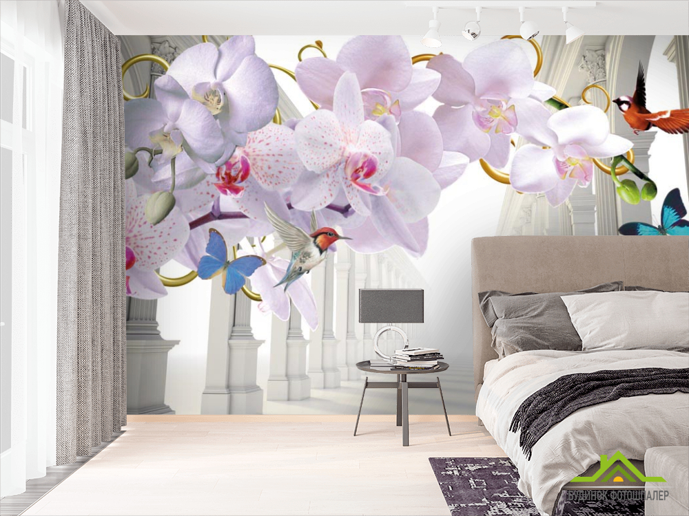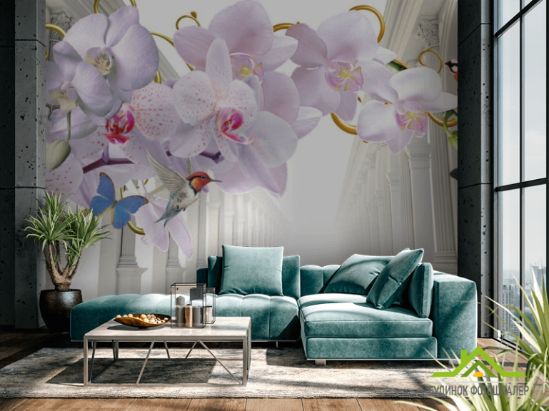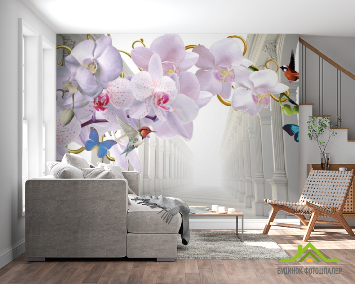Фотошпалери 3d орхідея і коридор Фотошпалери 3d орхідея і коридор