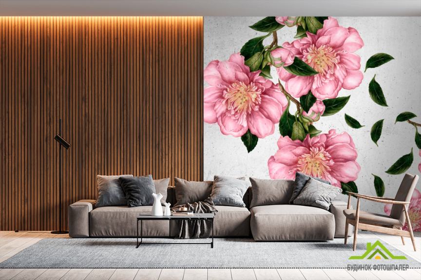 Фотошпалери Мальовані квіти на стіні