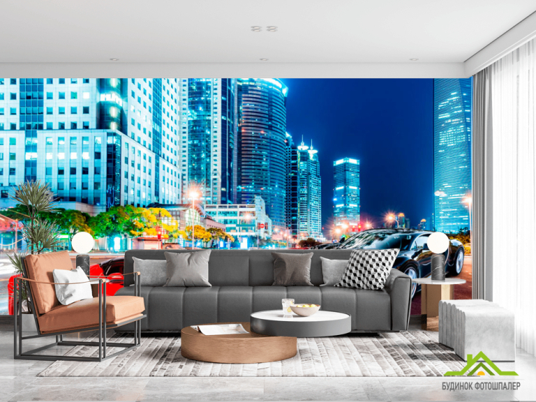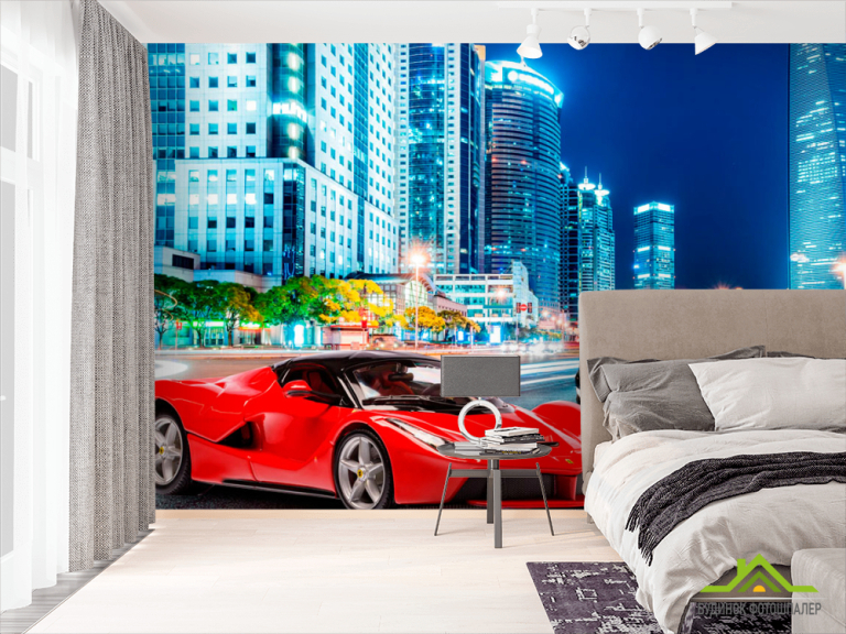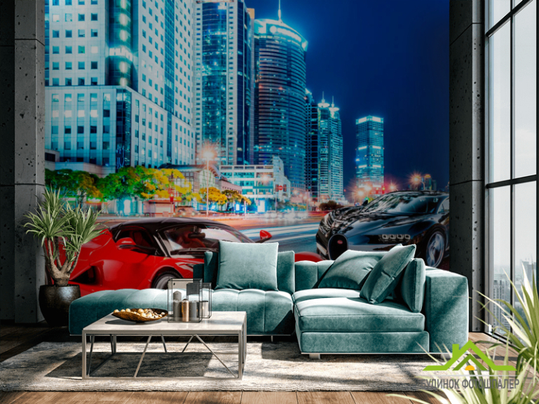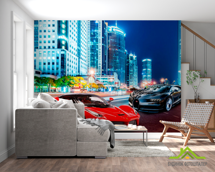 Фотошпалери Машини на тлі міста Фотошпалери Машини на тлі міста