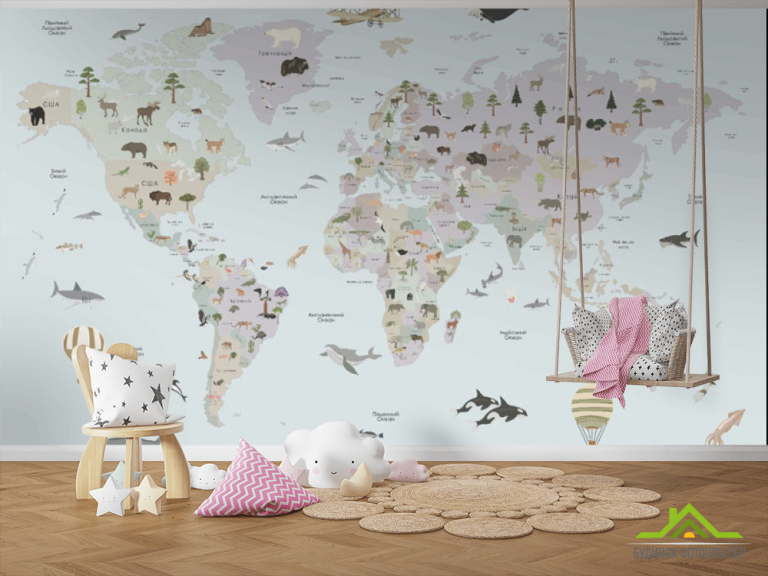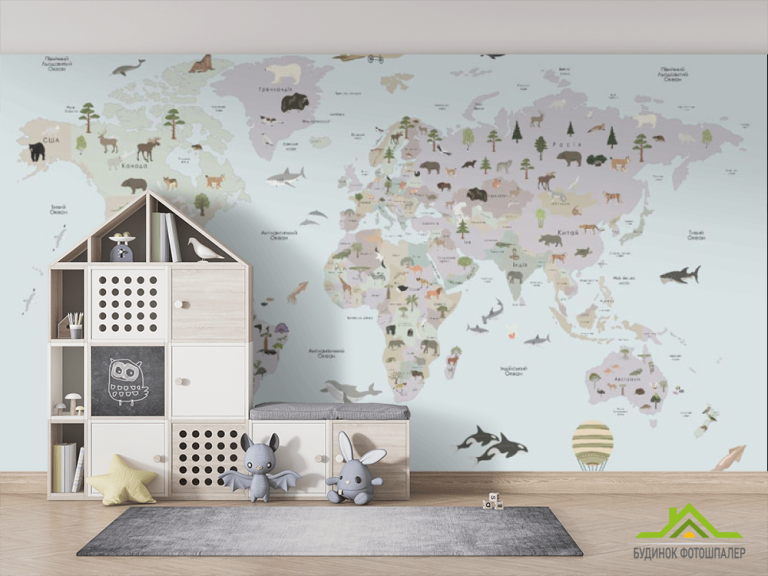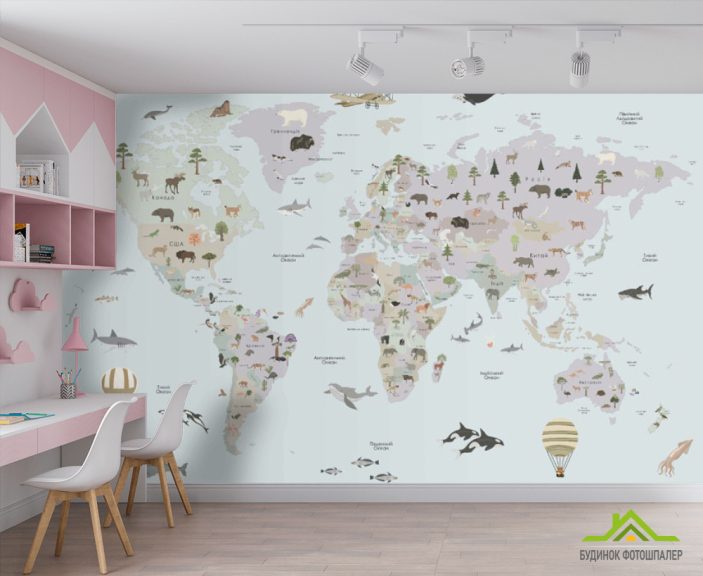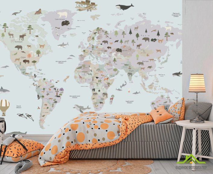 Фотошпалери Дитяча карта з флорою і фауною Фотошпалери Дитяча карта з флорою і фауною