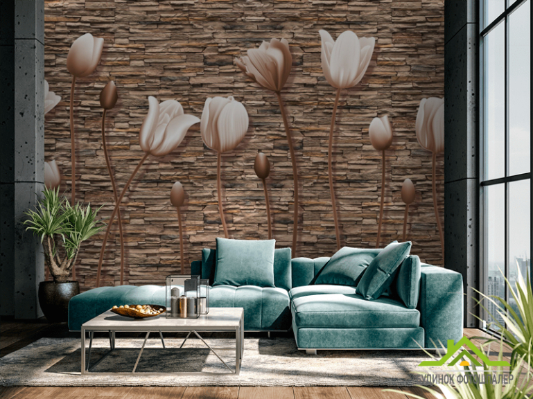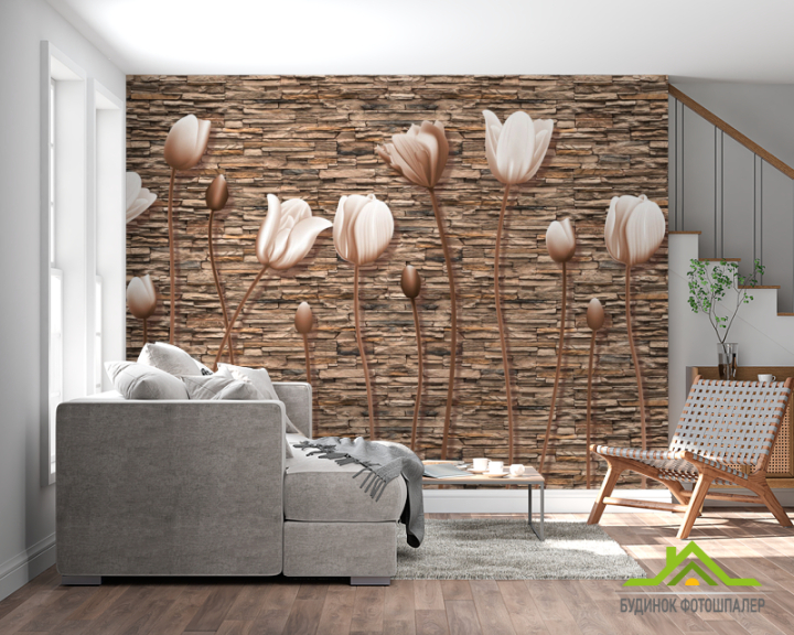 Фотошпалери Тюльпани на кам'яному тлі Фотошпалери Тюльпани на кам'яному тлі