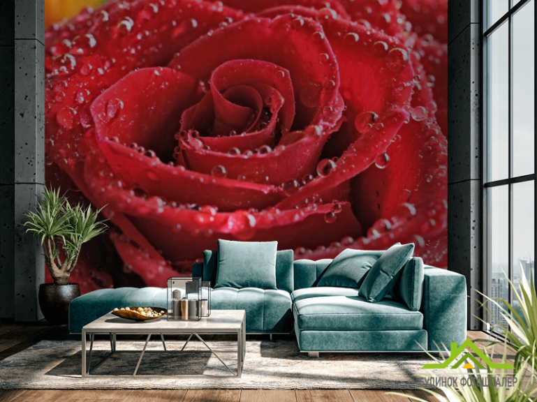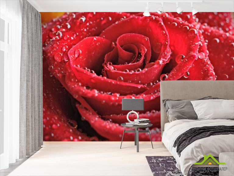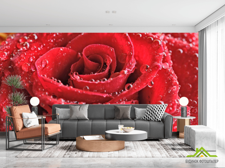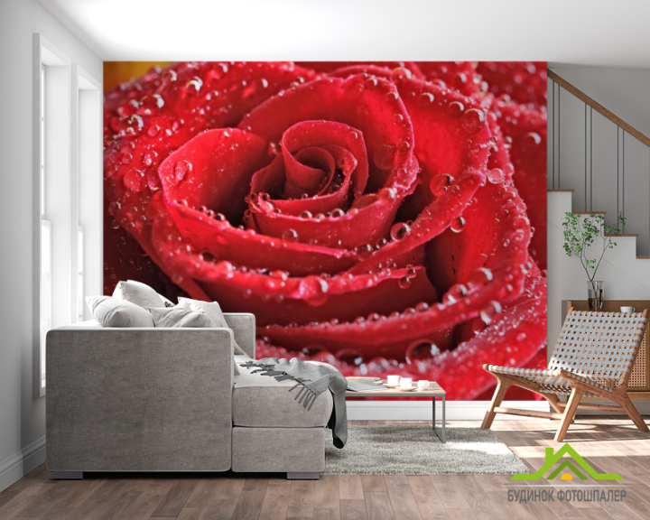 Фотошпалери червона троянда з краплями Фотошпалери червона троянда з краплями