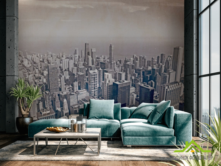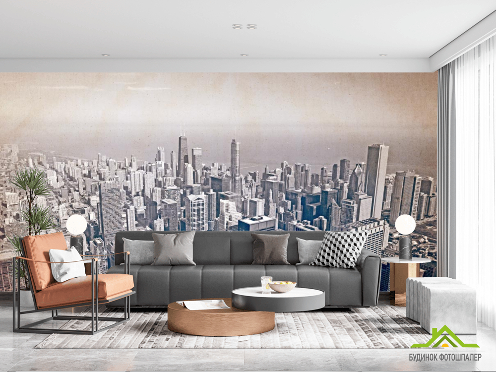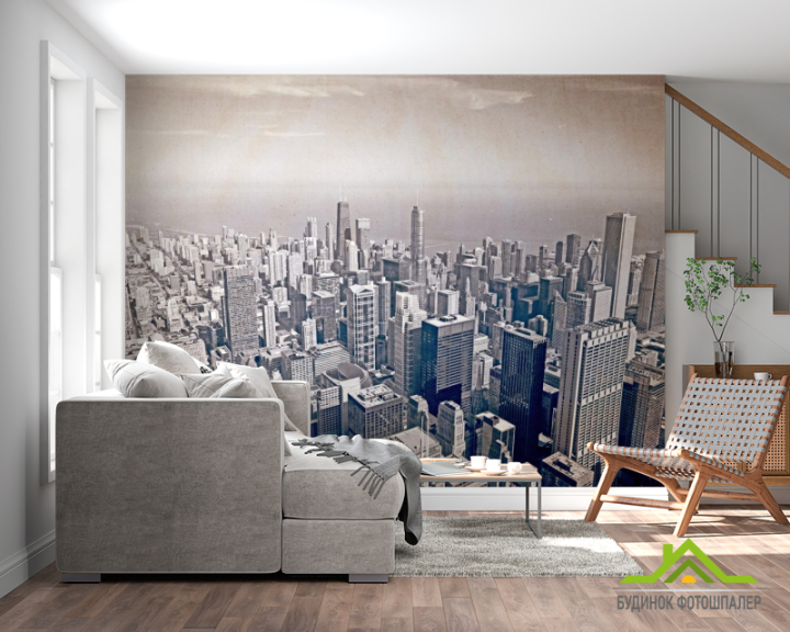Фотошпалери мегаполіс над океаном стара папір