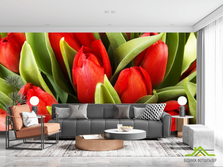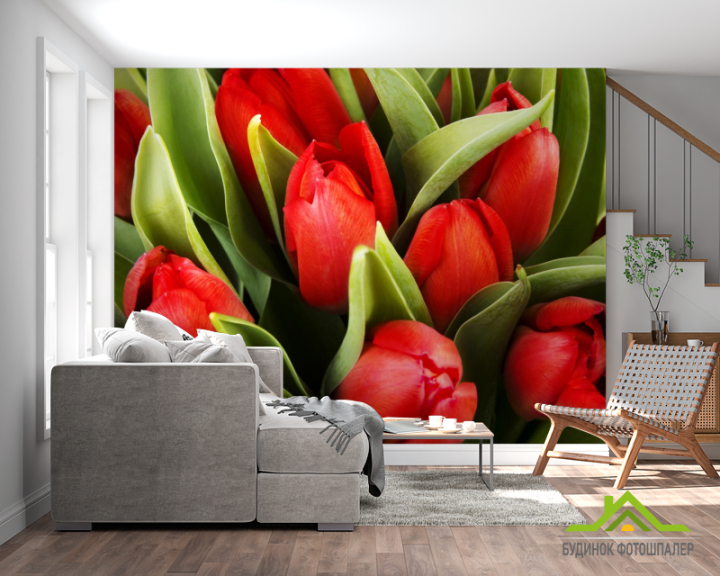 Фотошпалери червоні тюльпани Фотошпалери червоні тюльпани