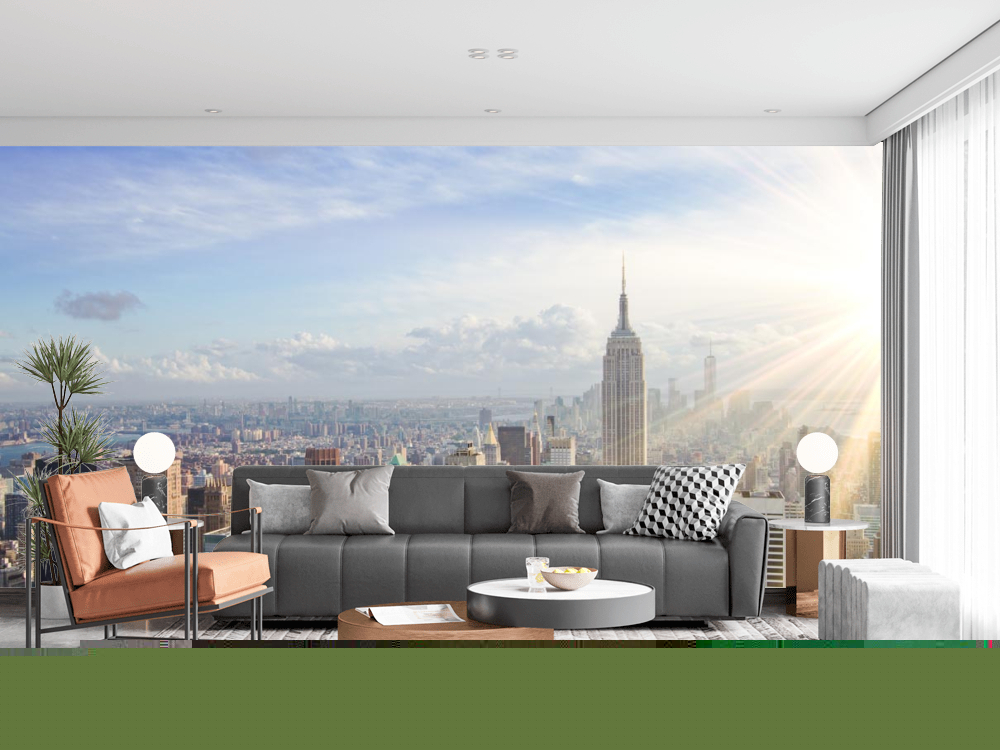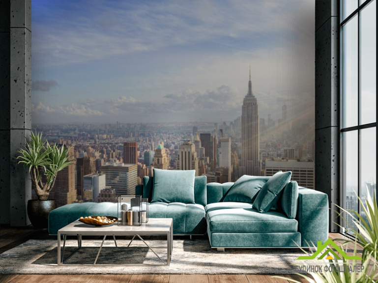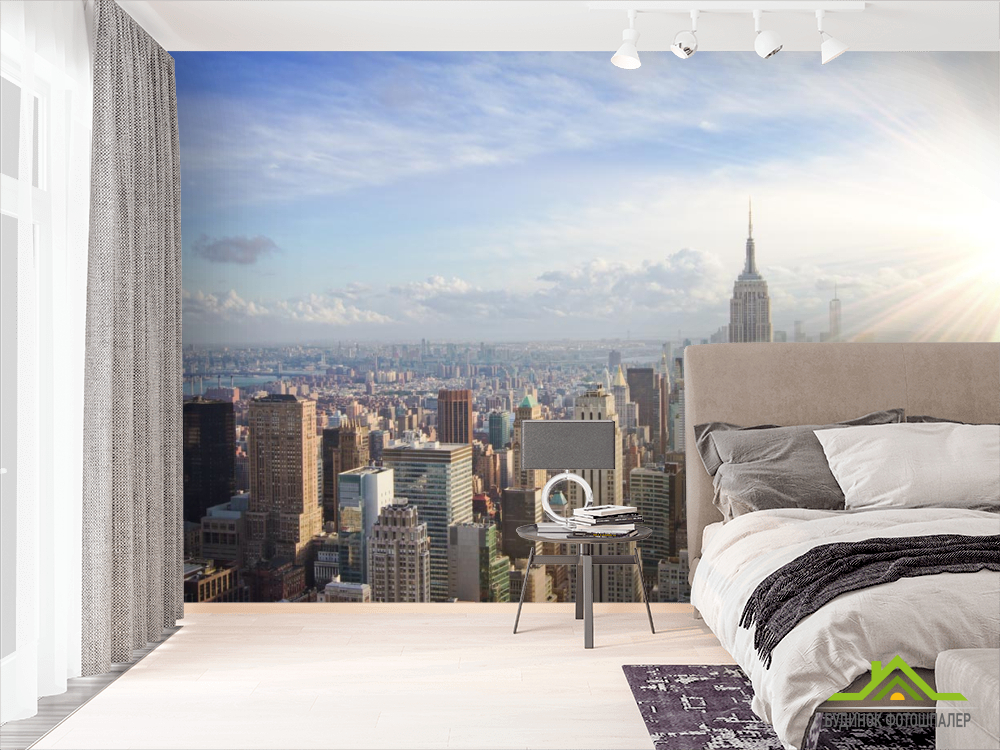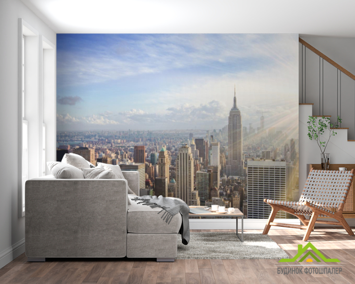 Фотошпалери сонце над шпилями багатоповерхівок Фотошпалери сонце над шпилями багатоповерхівок
