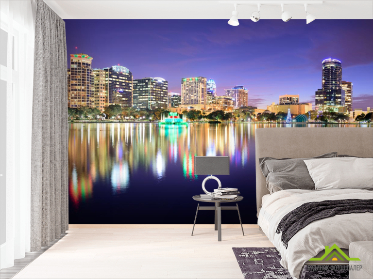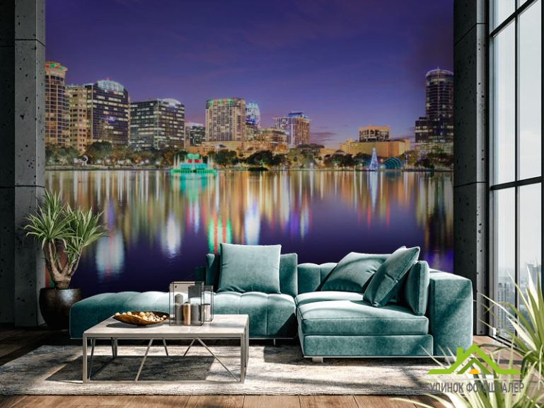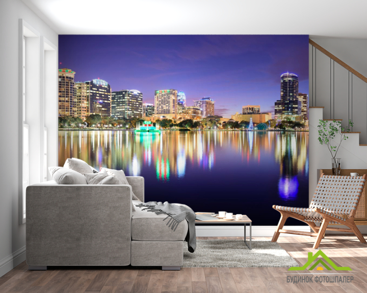 Фотошпалери різдвяний місто над водою