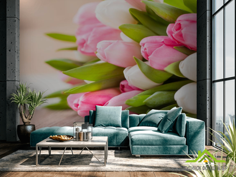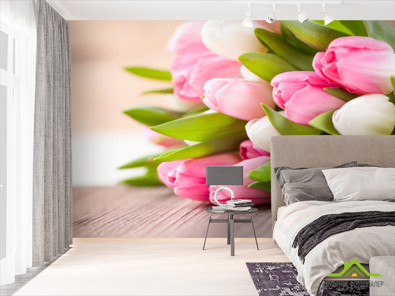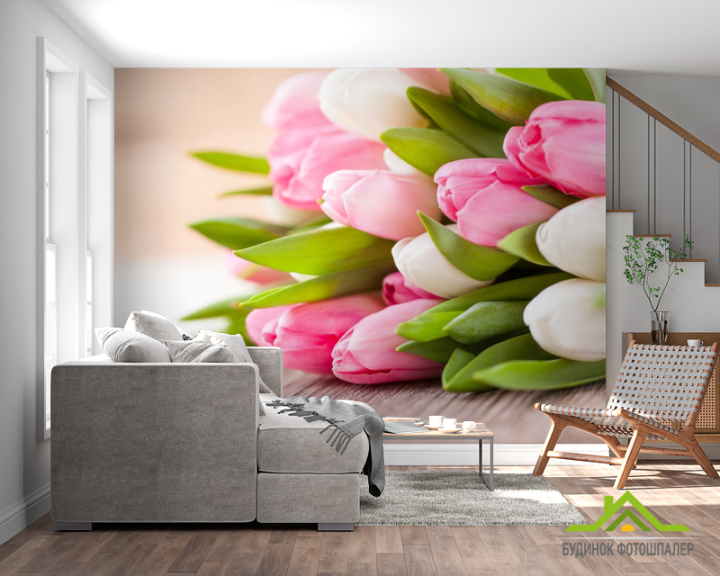 Фотошпалери білі і рожеві тюльпани Фотошпалери білі і рожеві тюльпани