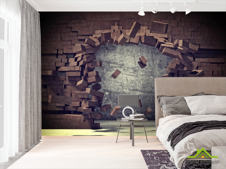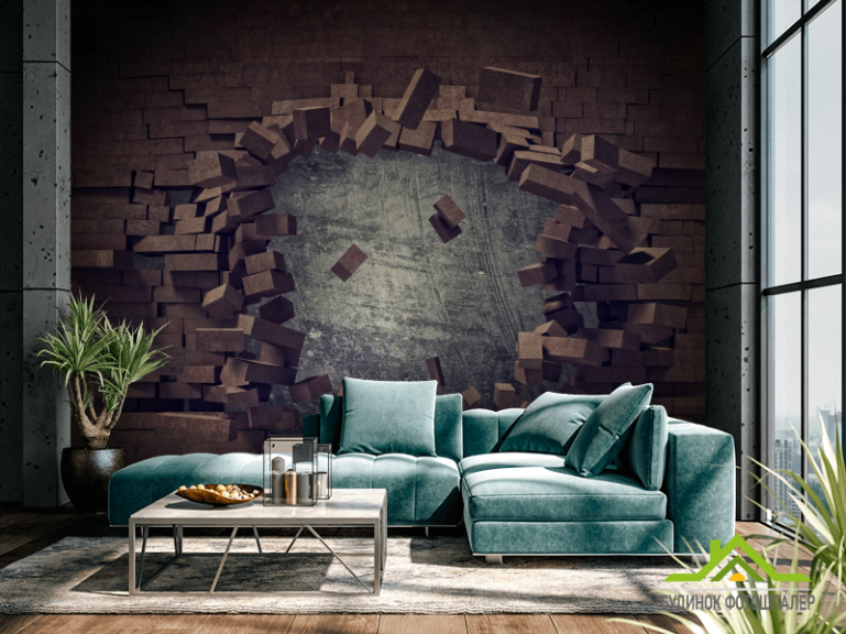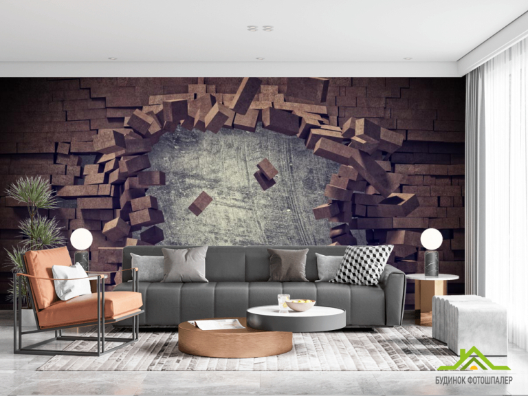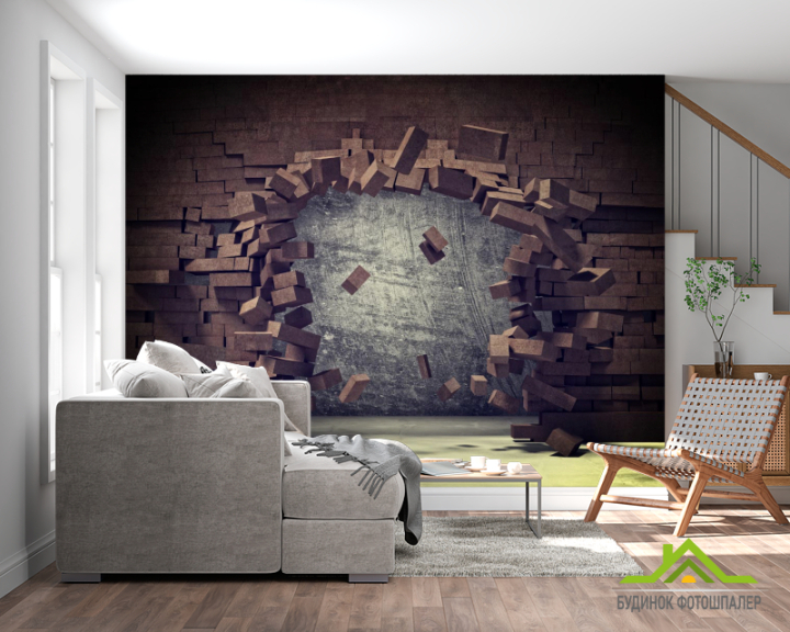 Фотошпалери Розбита коричнева цегляна стіна Фотошпалери Розбита коричнева цегляна стіна