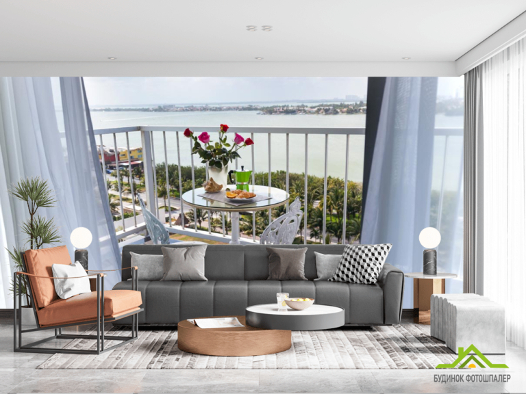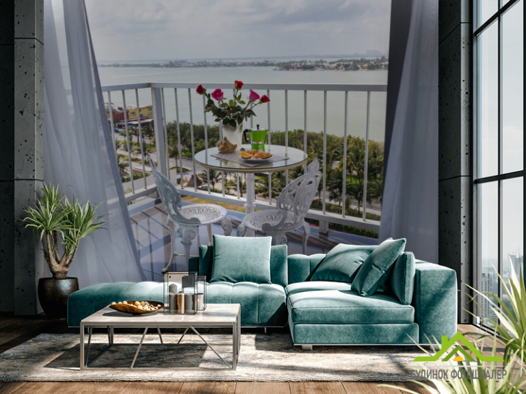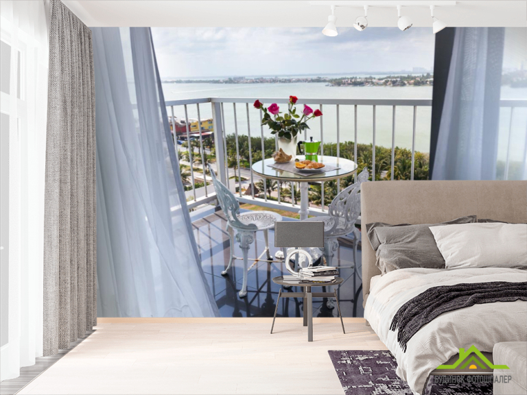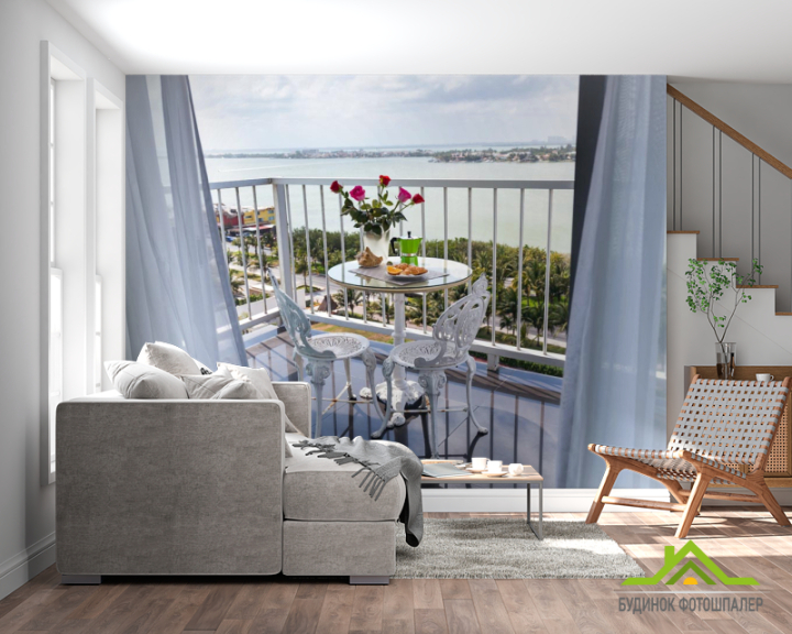Фотошпалери вид на море з балкона білого Фотошпалери вид на море з балкона білого