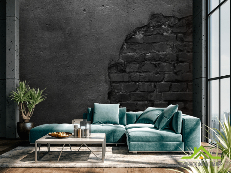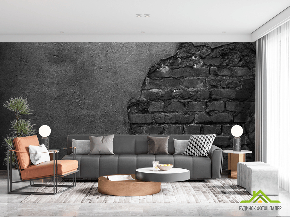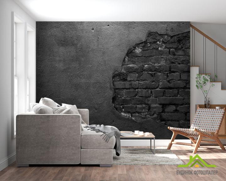 Фотошпалери Чорна цегляна стіна із штукатуркою Фотошпалери Чорна цегляна стіна із штукатуркою
