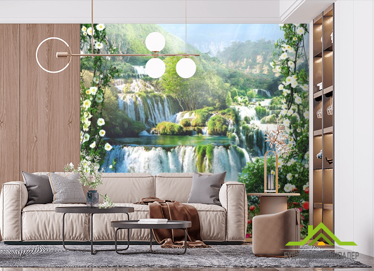 Фотошпалери водоспад за кам'яним парканом Фотошпалери водоспад за кам'яним парканом