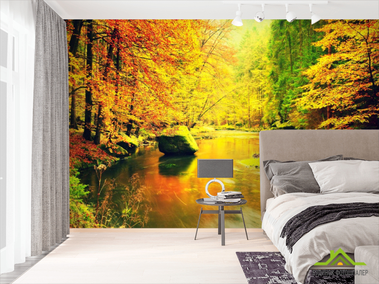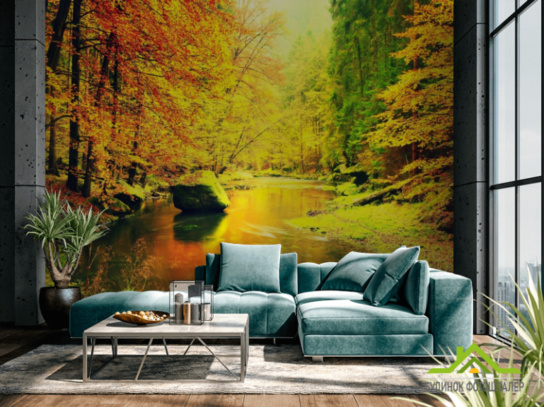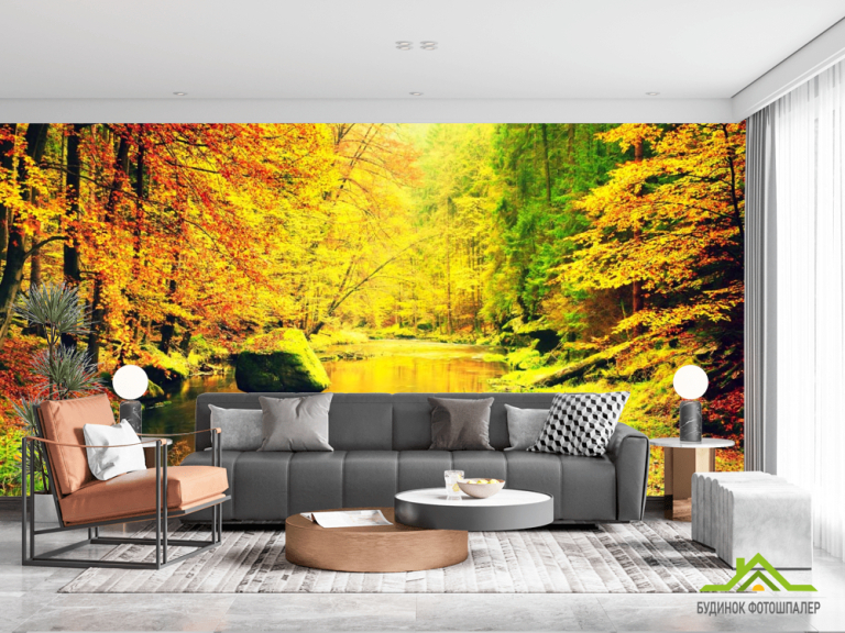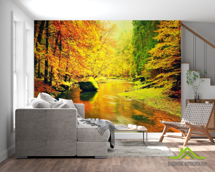 Фотошпалери жовтий осінній ліс Фотошпалери жовтий осінній ліс