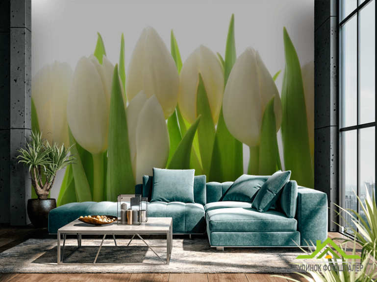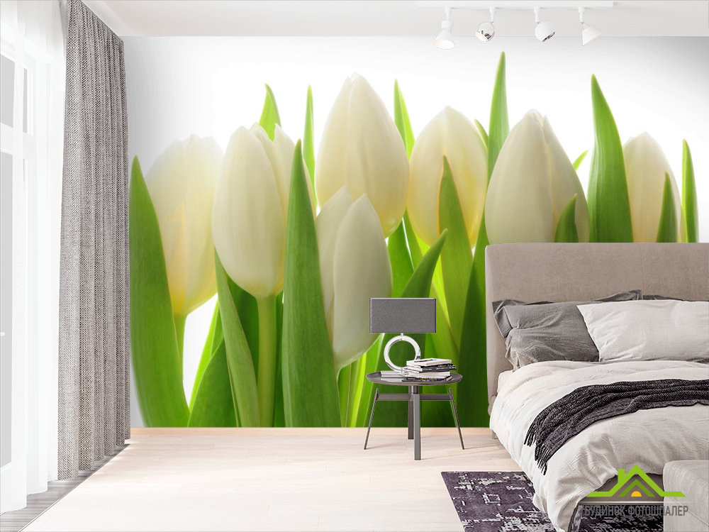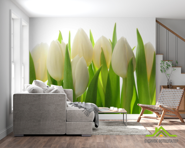Фотошпалери білі тюльпани Фотошпалери білі тюльпани