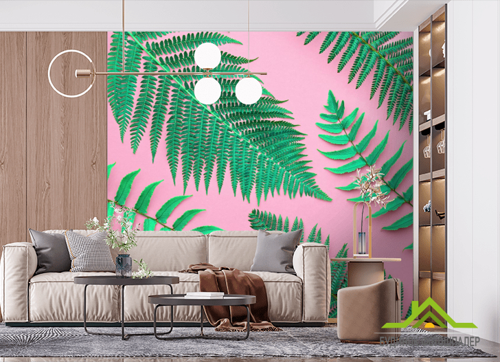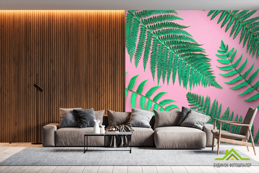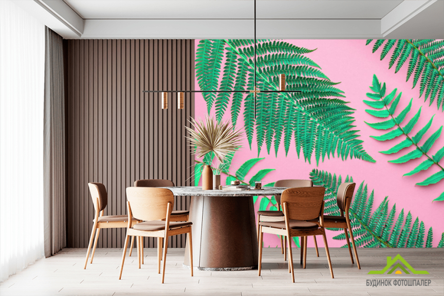 Фотошпалери листя на рожевому тлі