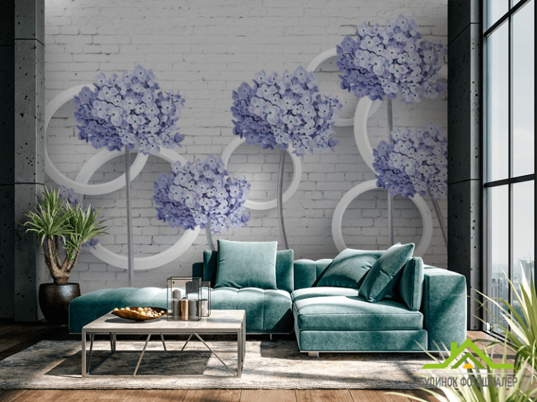 Фотошпалери 3д квіти блакитні