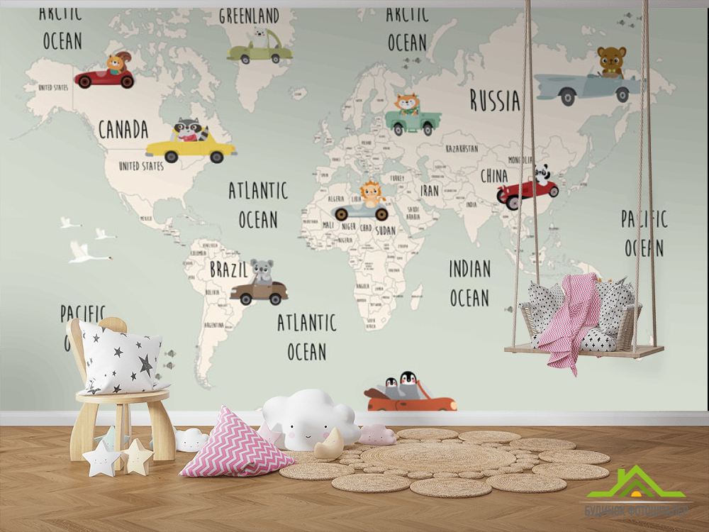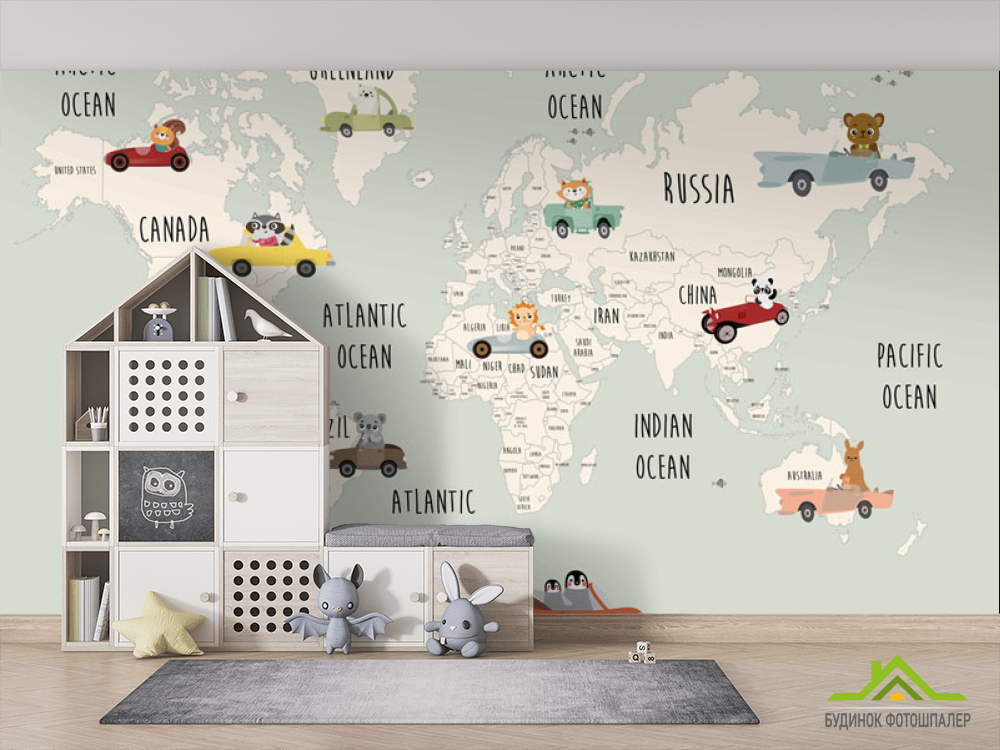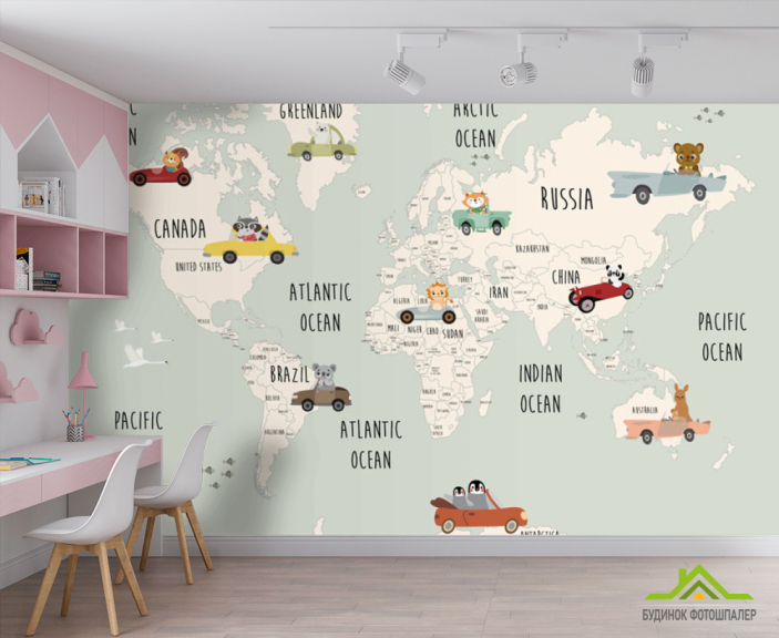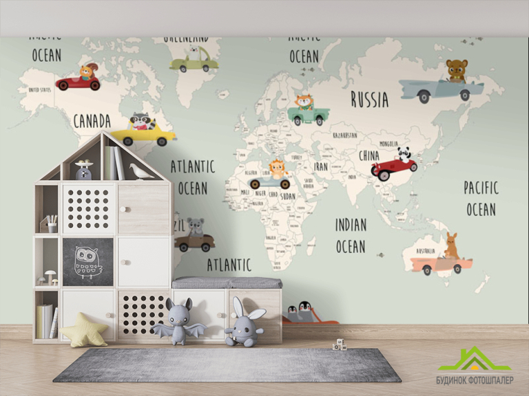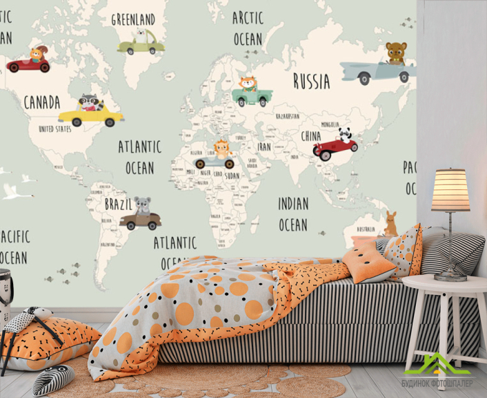 Фотошпалери Дитяча карта з машинками для хлопчика англійською
