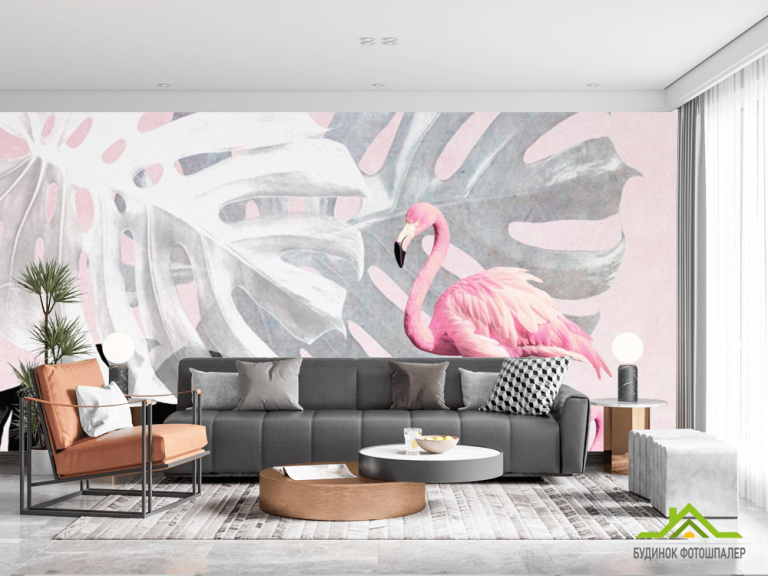 Фотошпалери Фламінго і Монстера Фотошпалери Фламінго і Монстера