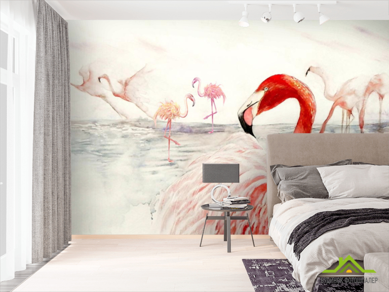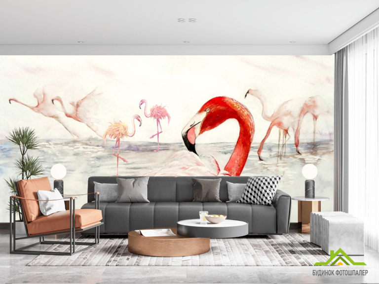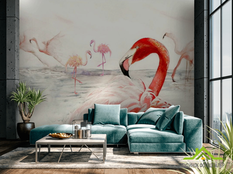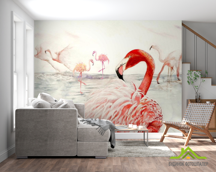 Фотошпалери Зграї рожевих фламінго Фотошпалери Зграї рожевих фламінго