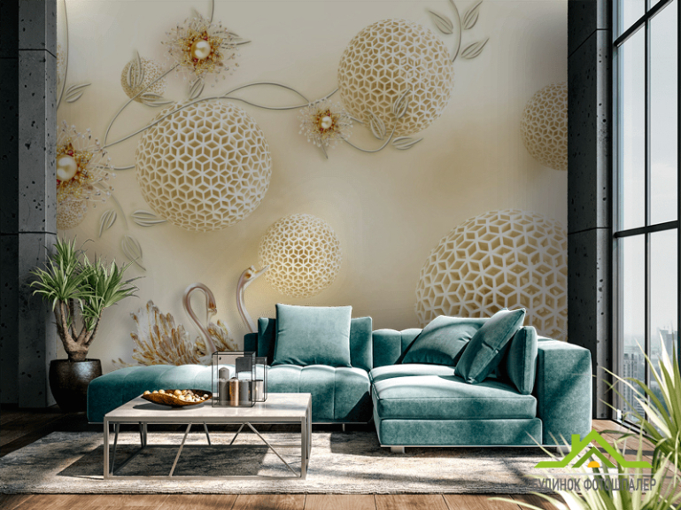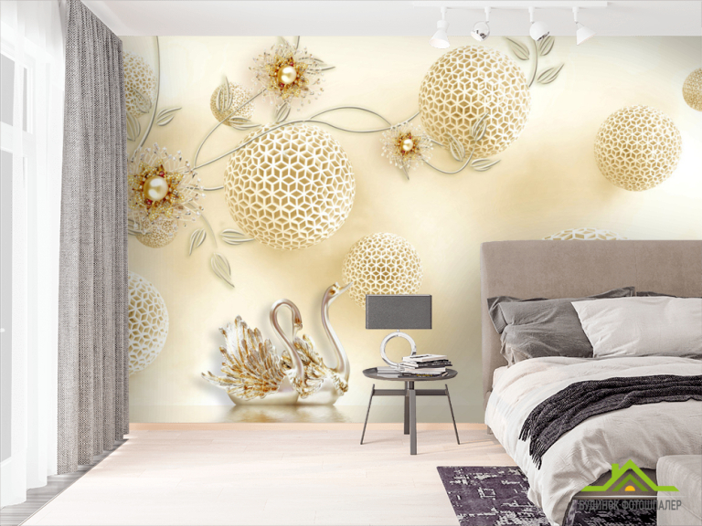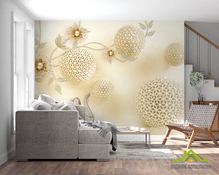 Фотошпалери Лебеді зі сферами Фотошпалери Лебеді зі сферами
