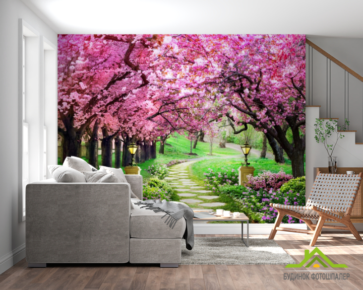 Фотошпалери Рожеві дерева Фотошпалери Рожеві дерева