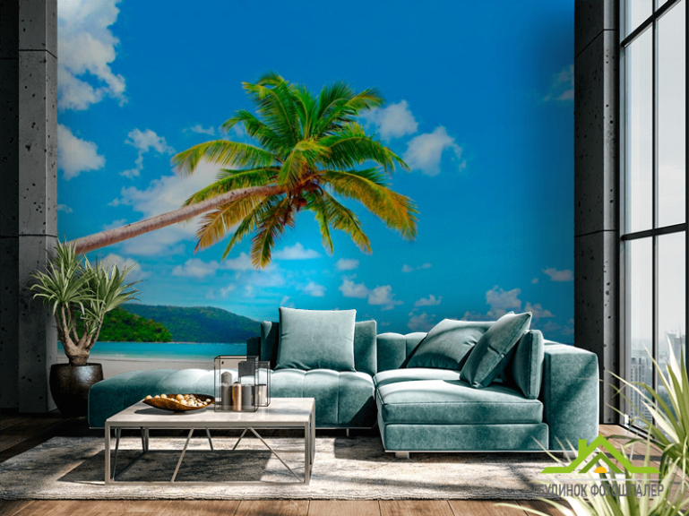Фотошпалери Схилилася пальма біля моря