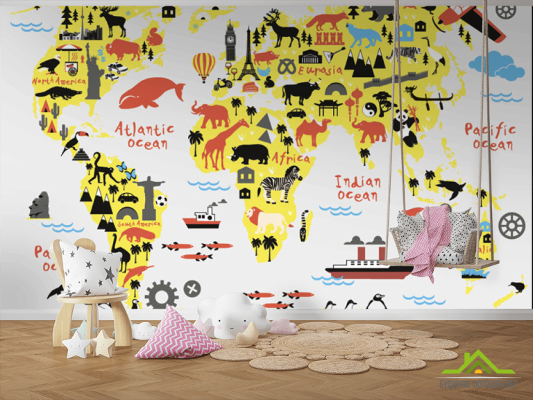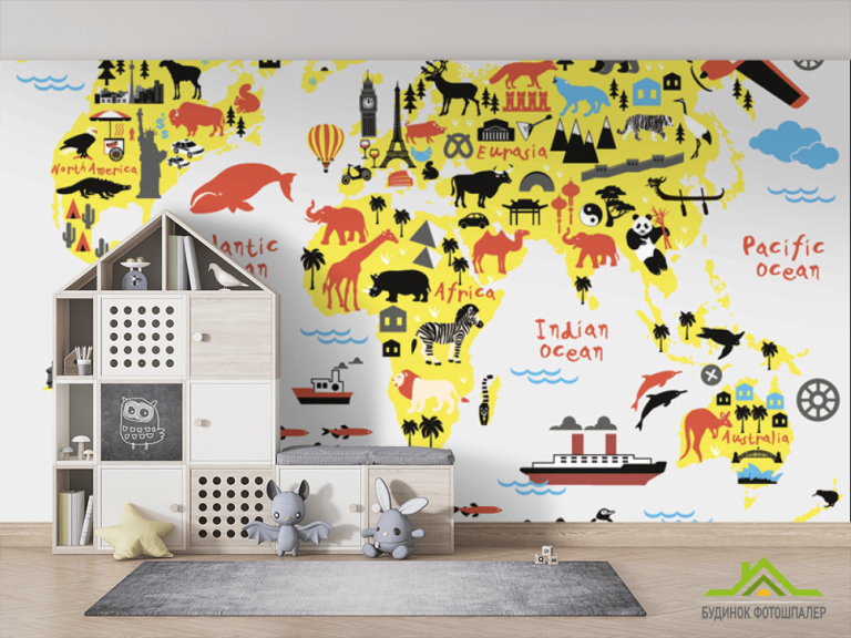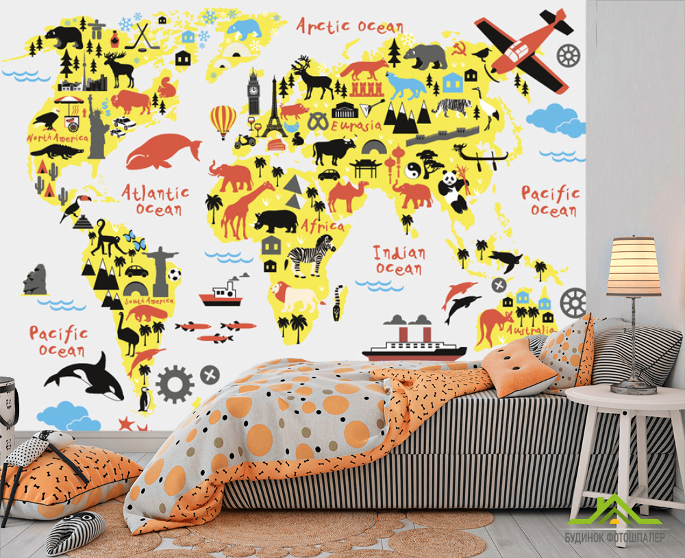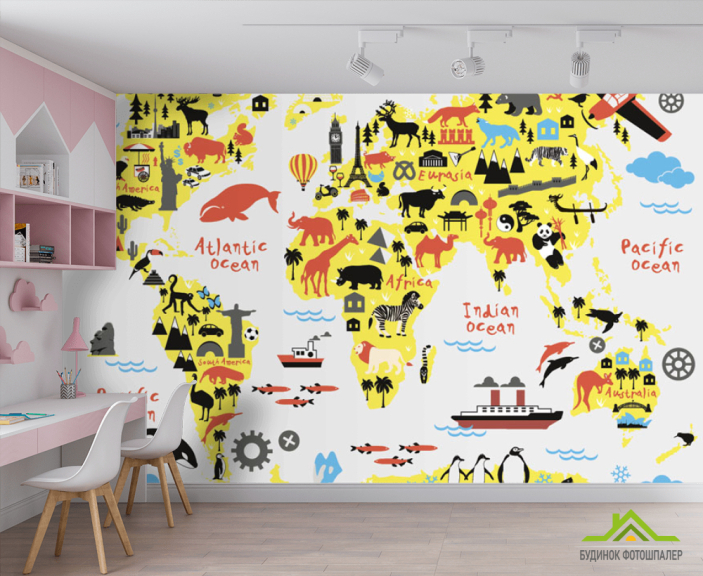 Фотошпалери карта дитяча з тваринами Фотошпалери карта дитяча з тваринами