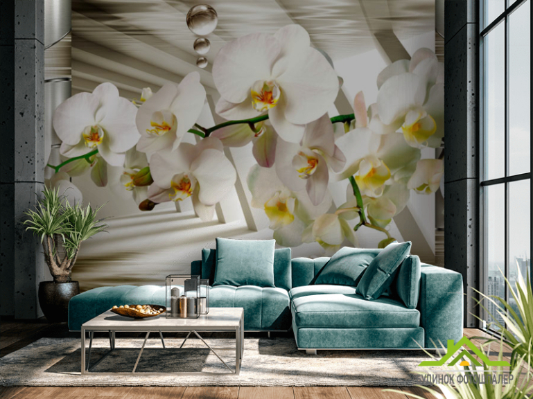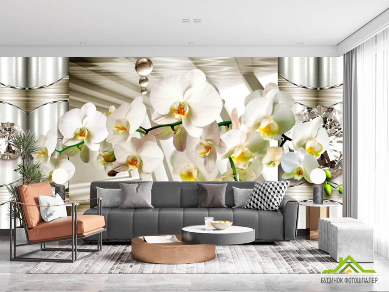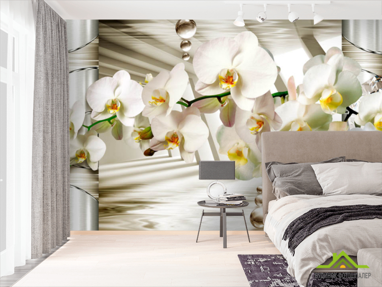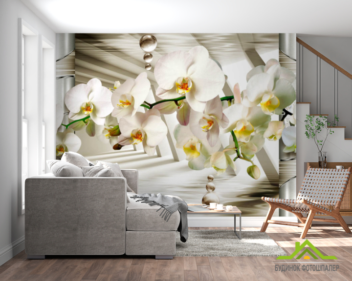 ФотообоиВетка орхідеї з камінням ФотообоиВетка орхідеї з камінням