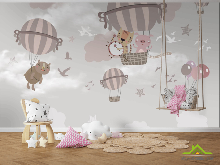 Фотошпалери Летять звірі на повітряних кулях Фотошпалери Летять звірі на повітряних кулях