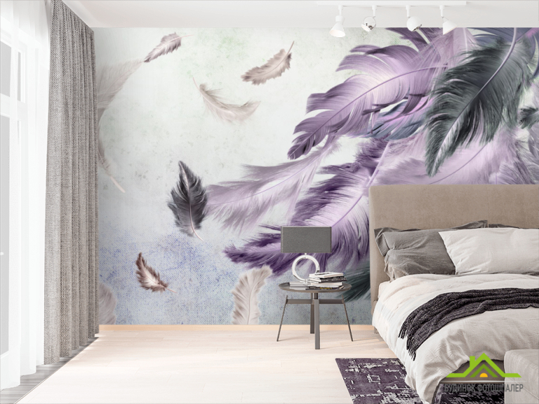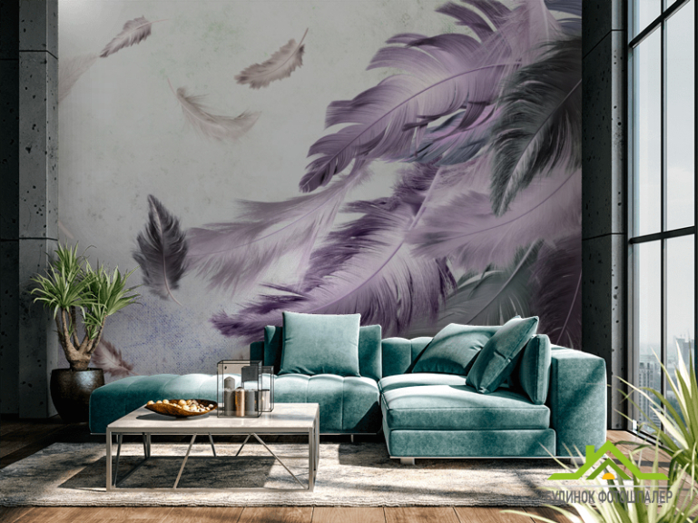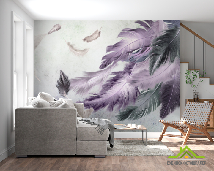 Фотошпалери Пір'я на сірому тлі Фотошпалери Пір'я на сірому тлі