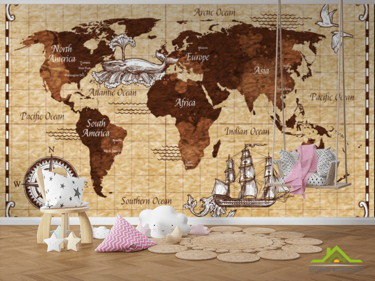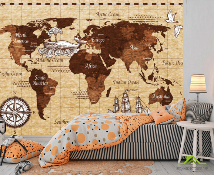 Фотошпалери Коричнева вінтажна карта Фотошпалери Коричнева вінтажна карта