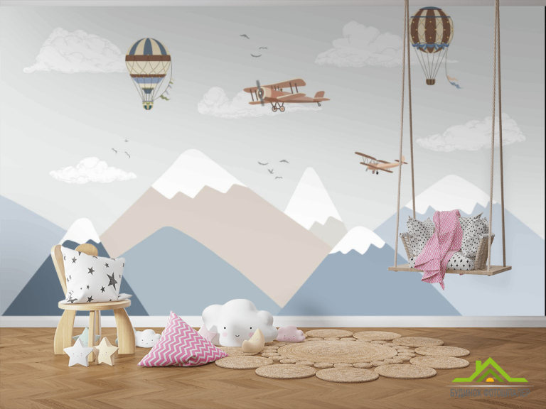 Фотошпалери Повітряні кулі і блакитні гори Фотошпалери Повітряні кулі і блакитні гори
