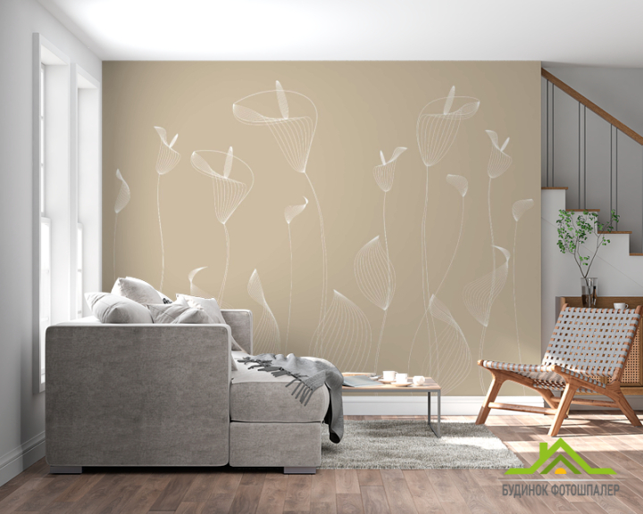 Фотошпалери Витончені лотоси бежеві Фотошпалери Витончені лотоси бежеві