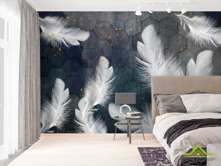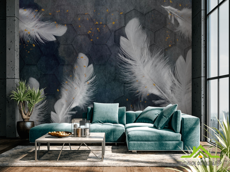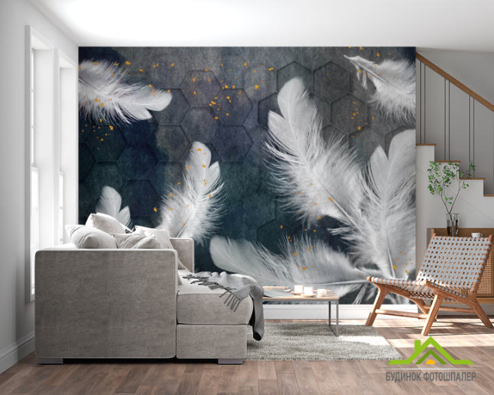 Фотошпалери Білі пір'я з золотом Фотошпалери Білі пір'я з золотом