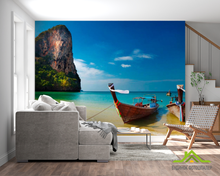 Фотошпалери Скеля, два човни Фотошпалери Скеля, два човни