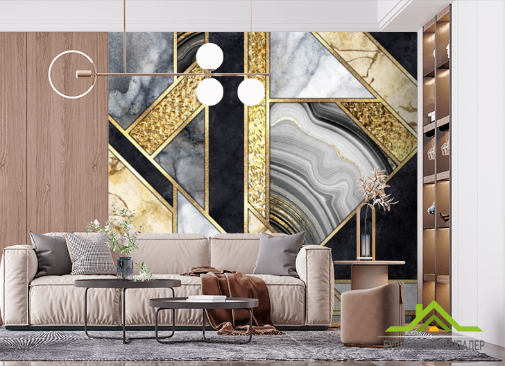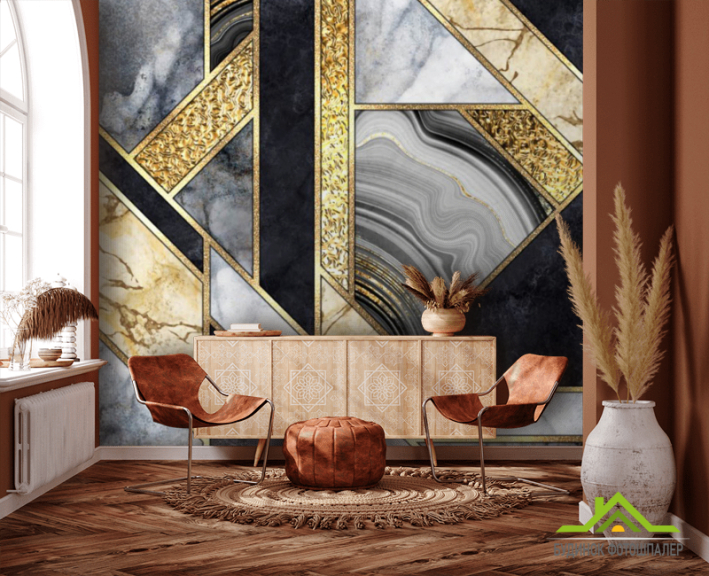 Фотошпалери сірий мармур з золотом Фотошпалери сірий мармур з золотом