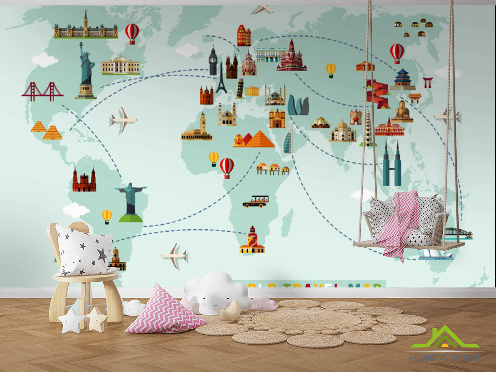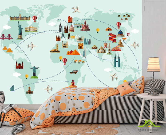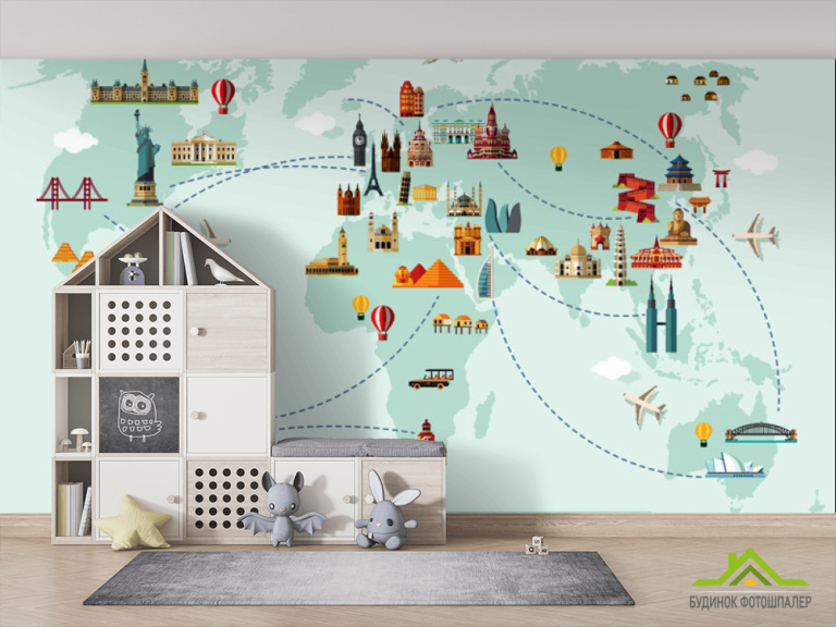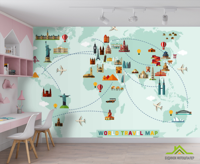 Фотошпалери Зелена карта подорожі для дітей Фотошпалери Зелена карта подорожі для дітей