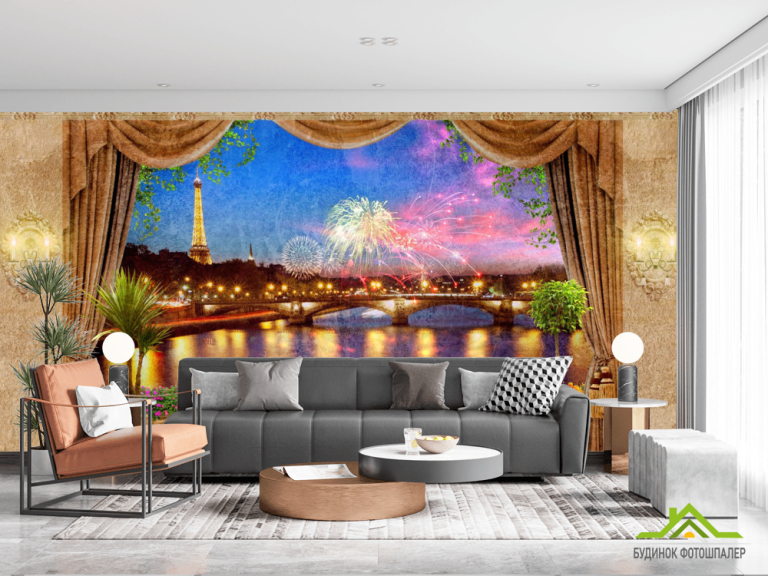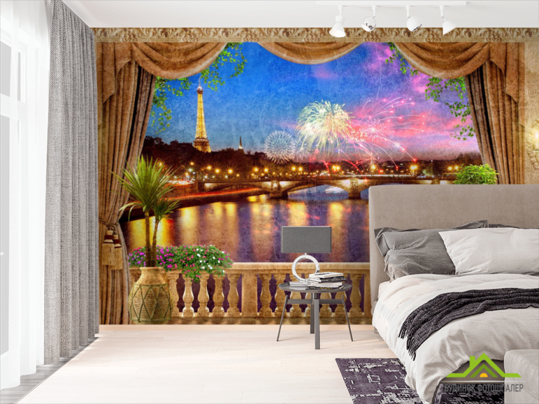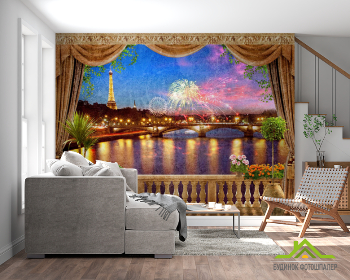 Фотошпалери Вид з вікна на нічний Париж Фотошпалери Вид з вікна на нічний Париж
