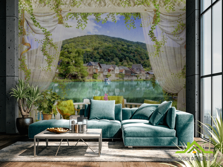 Фотошпалери Вид з вікна на Альпи Фотошпалери Вид з вікна на Альпи